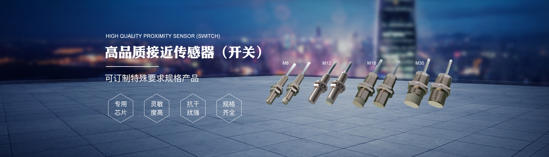 本公司硏發(fā)生產(chǎn)的接近幵關(guān)、紅外光電開關(guān)、紅外光幕等傳感器產(chǎn)品,采用德國D1NS00系 列標準及GB / TI 4048 . 10—1999國家標準,技術(shù)水平在國內(nèi)同行中處于領(lǐng)先地位。產(chǎn)品廣泛應(yīng)用于軸承、紡織、冶金、電梯、機床等行業(yè)的自動控制、質(zhì)量檢測和安全保護。